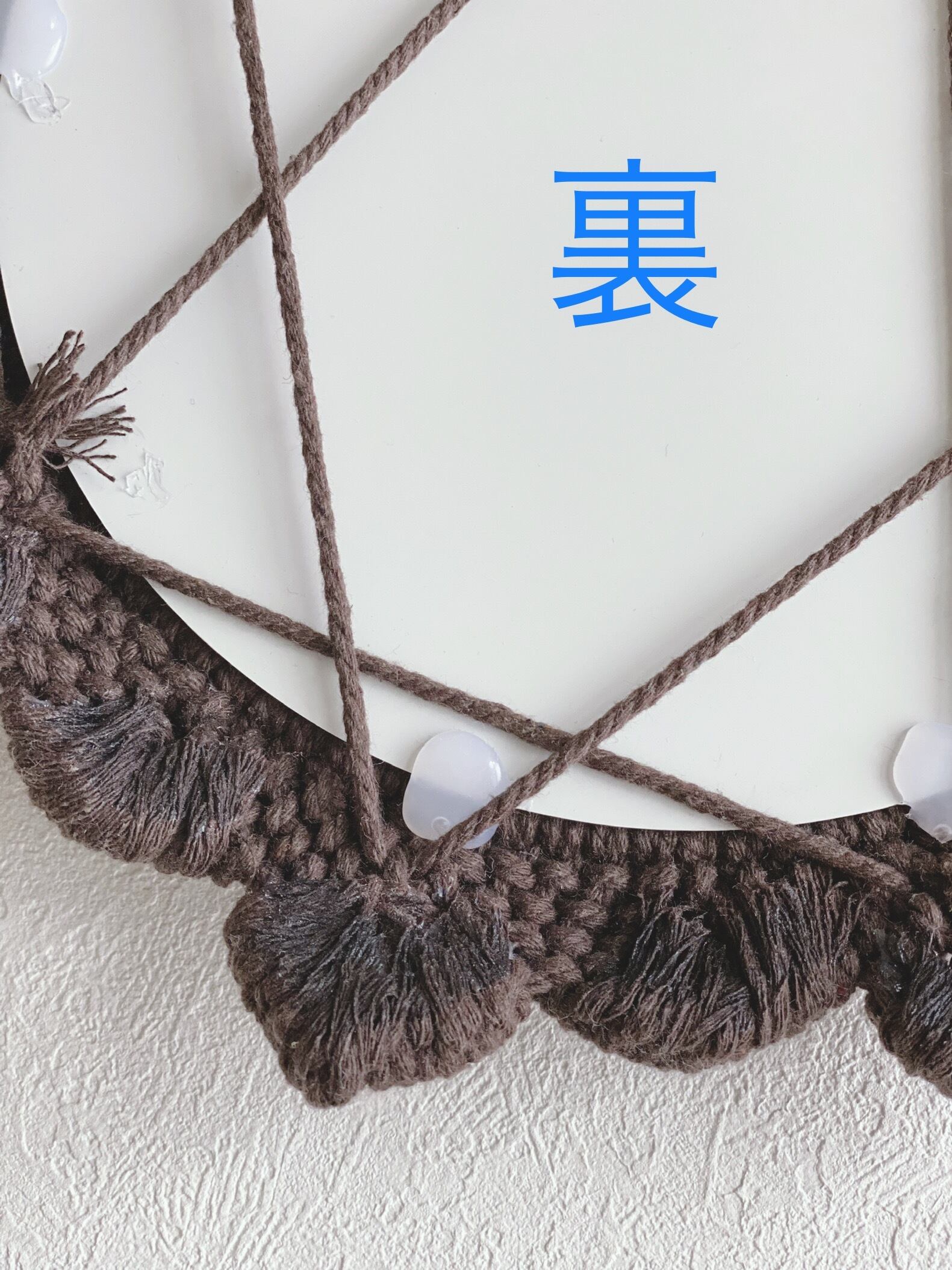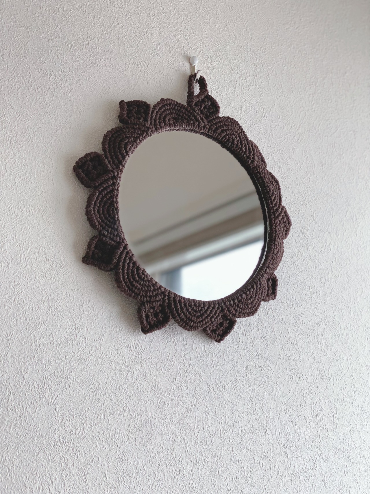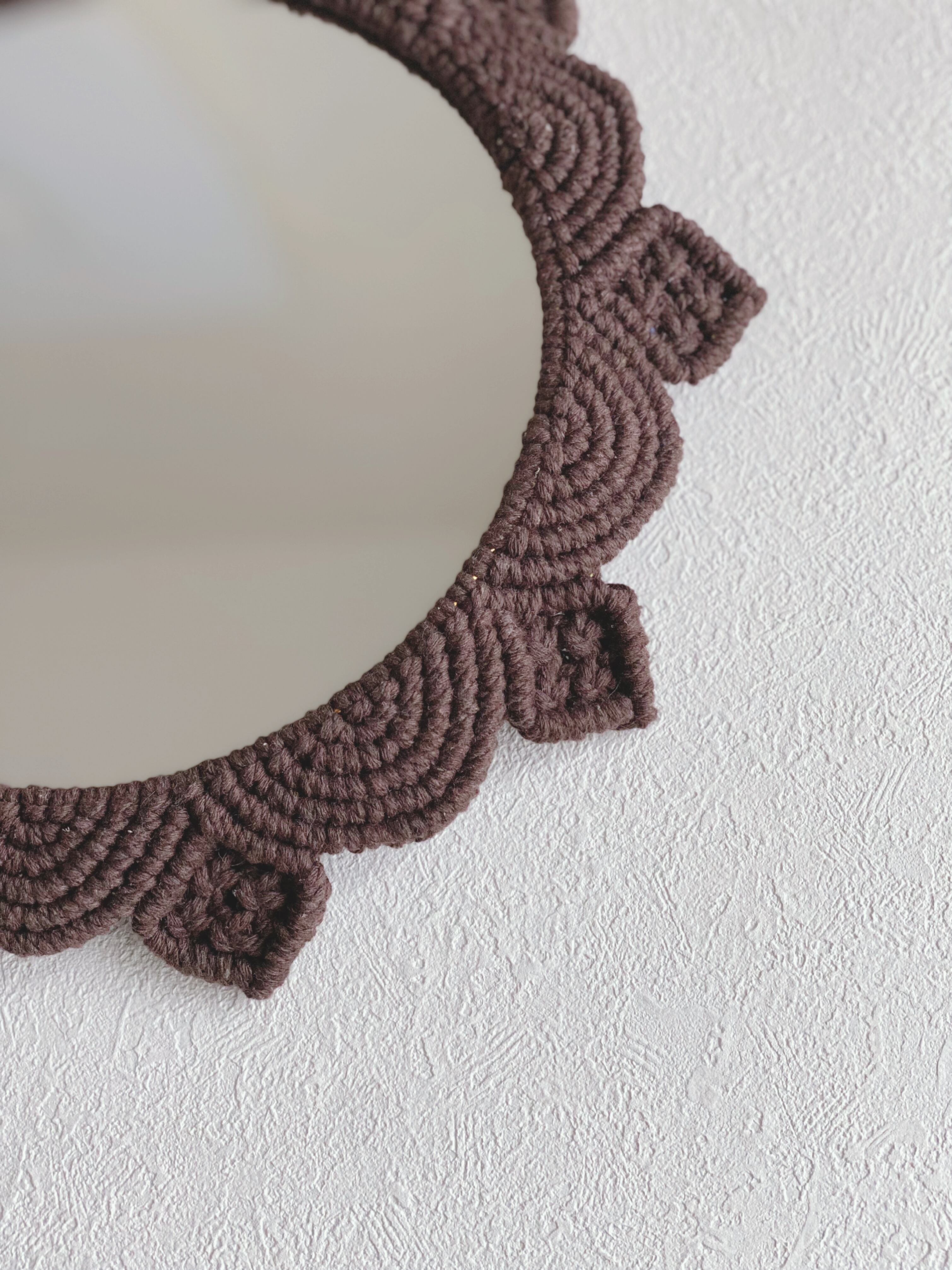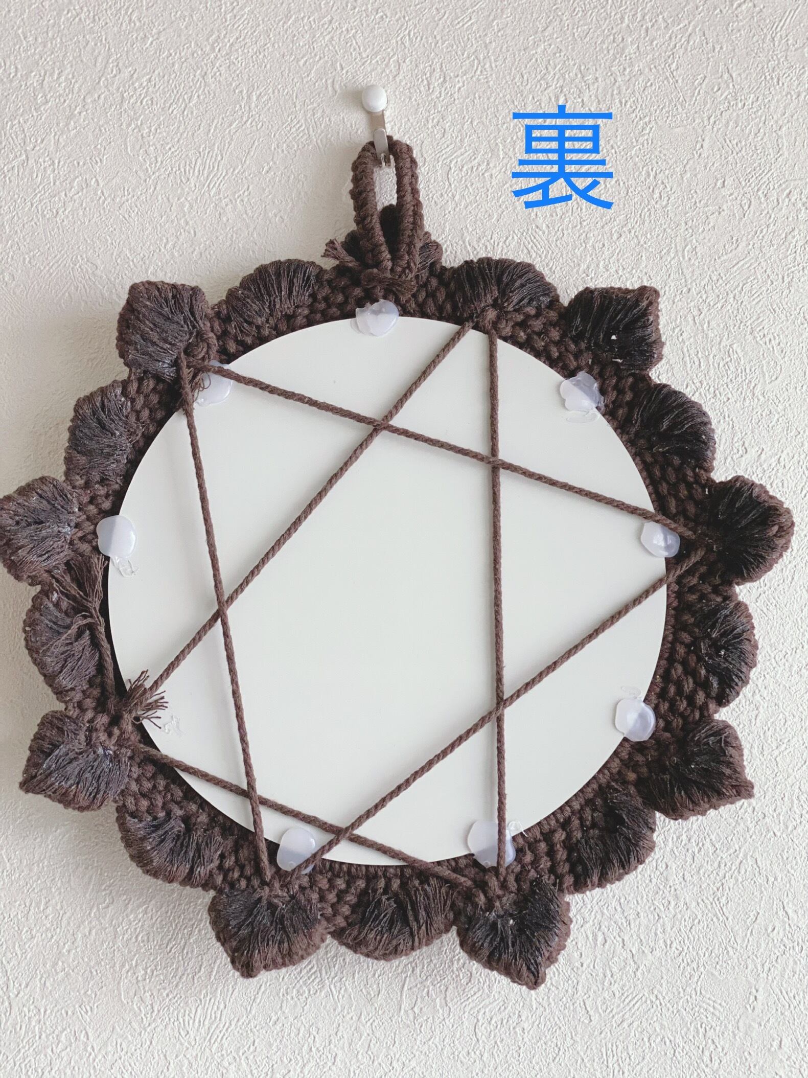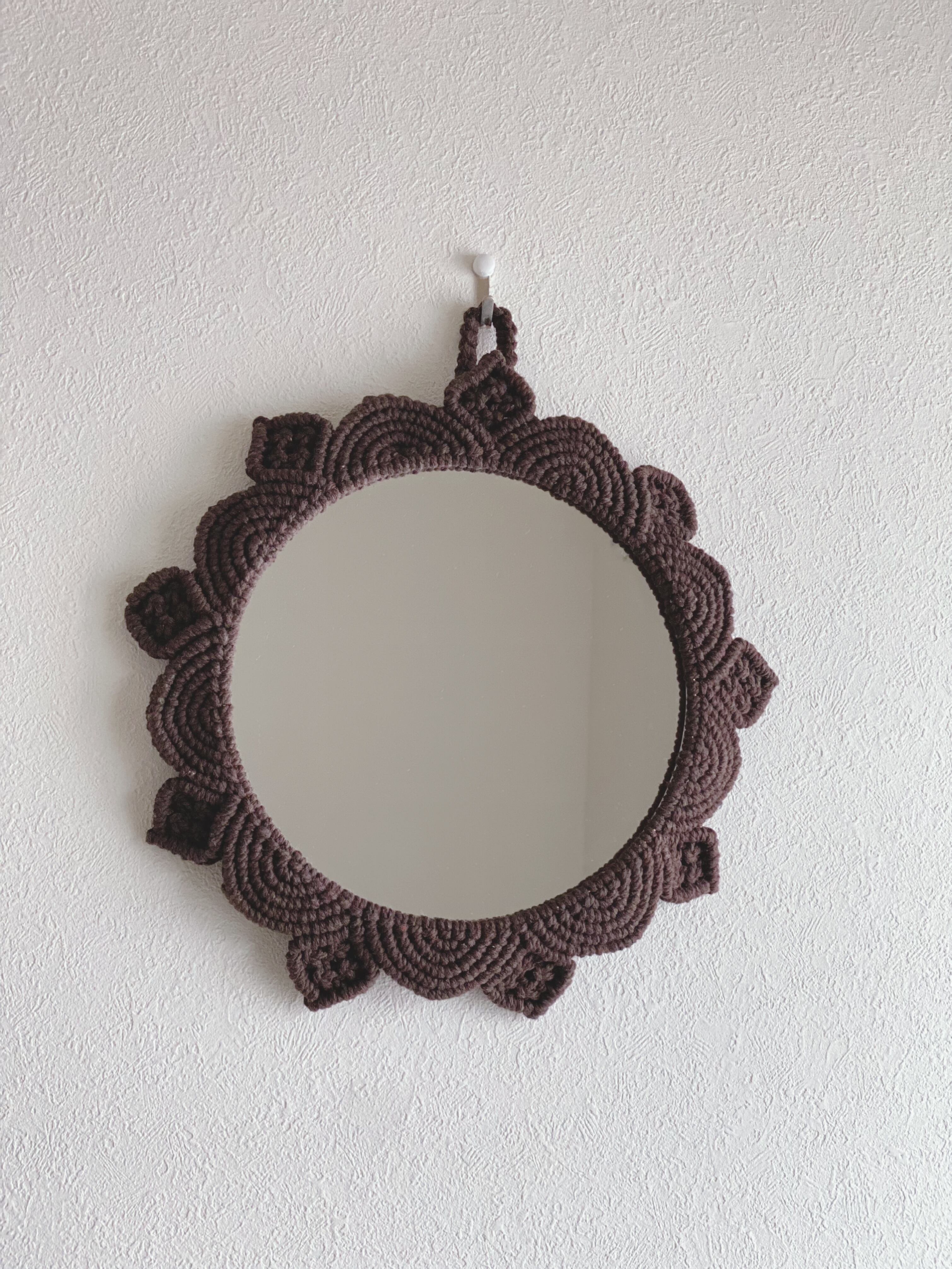 リビングや玄関先など気軽に飾っていただけるマクラメミラーとなります。