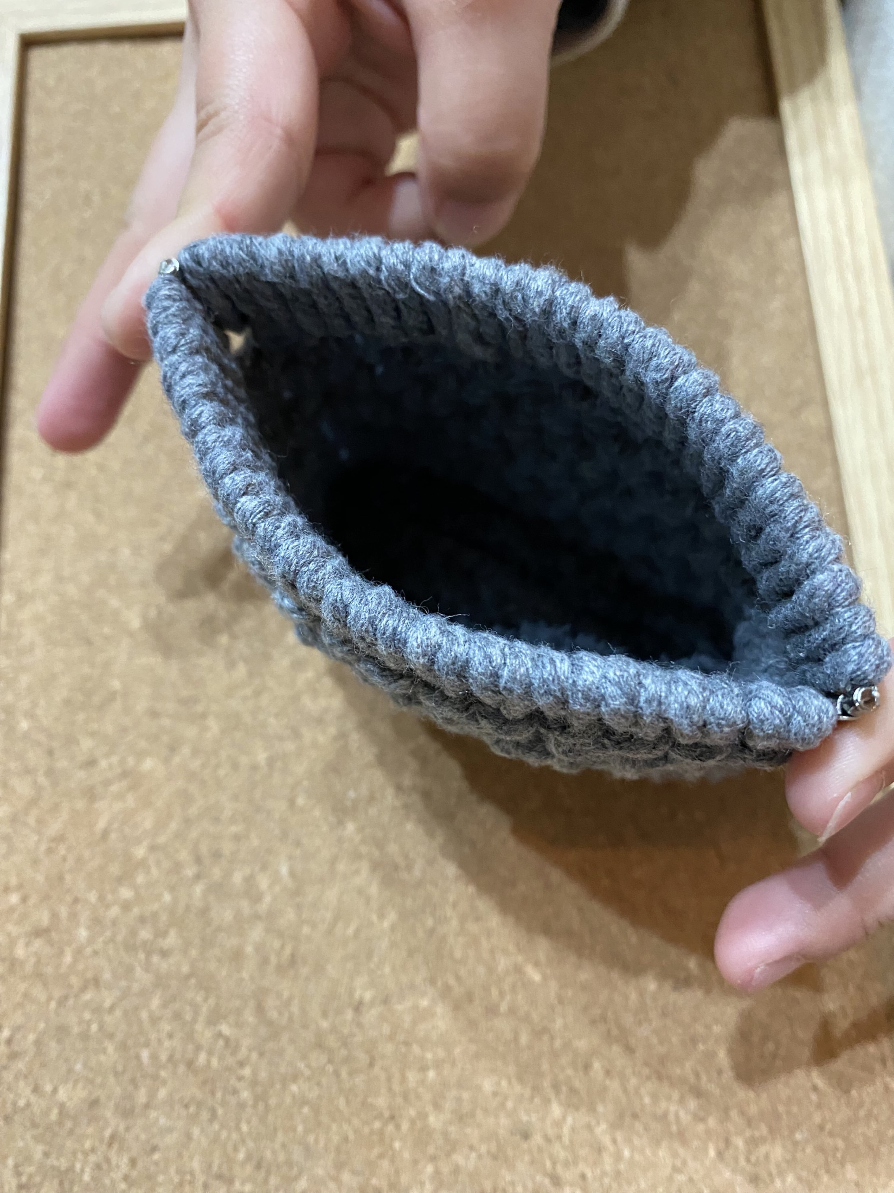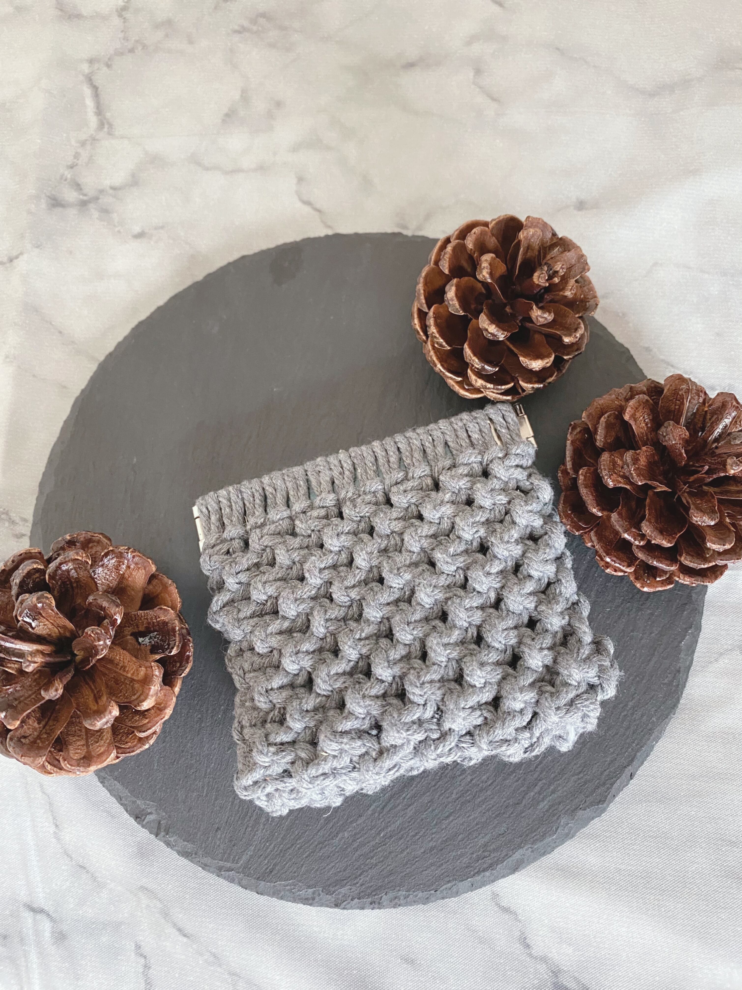 マクラメ バネ口 ポーチ【グレー】