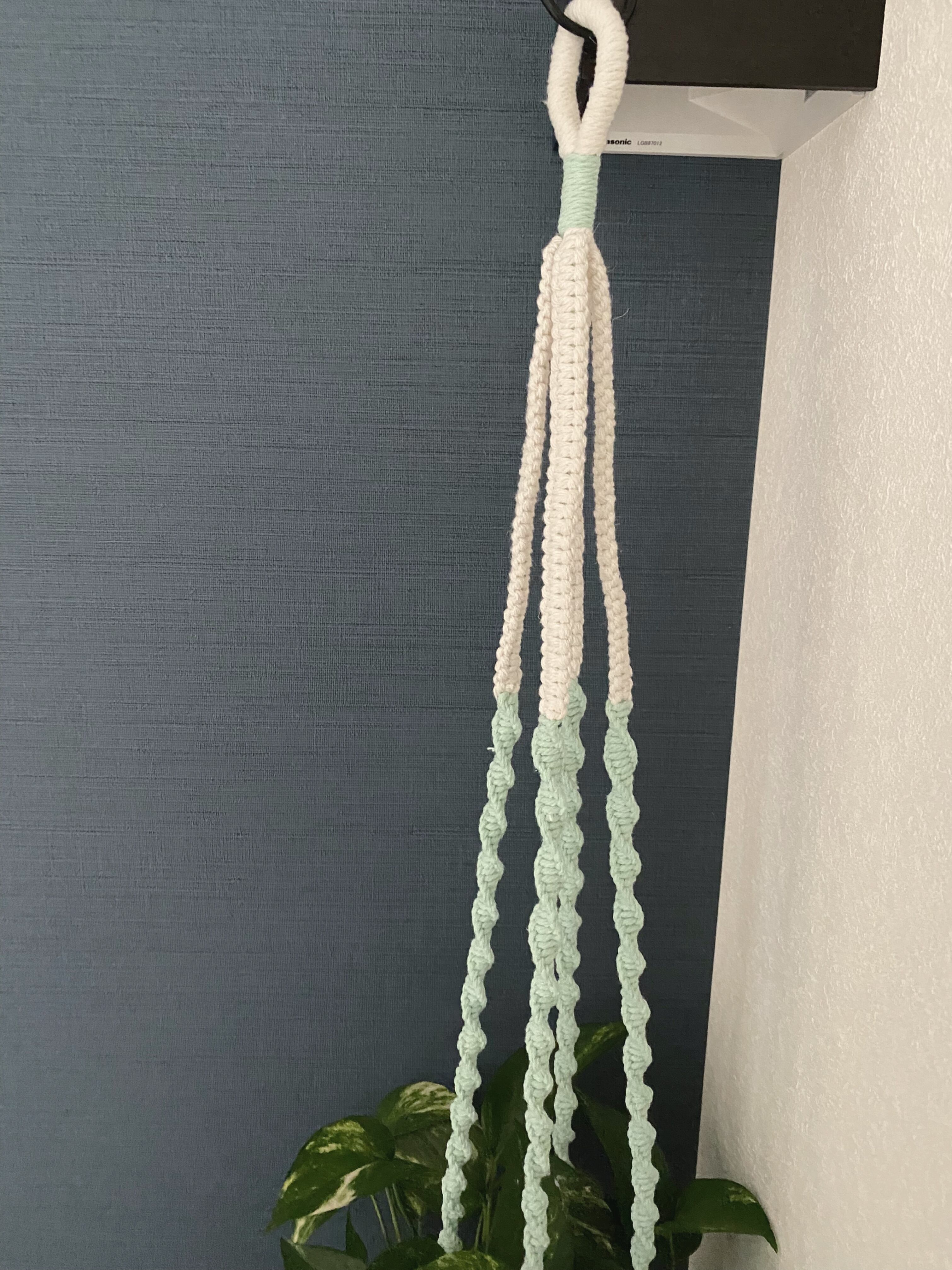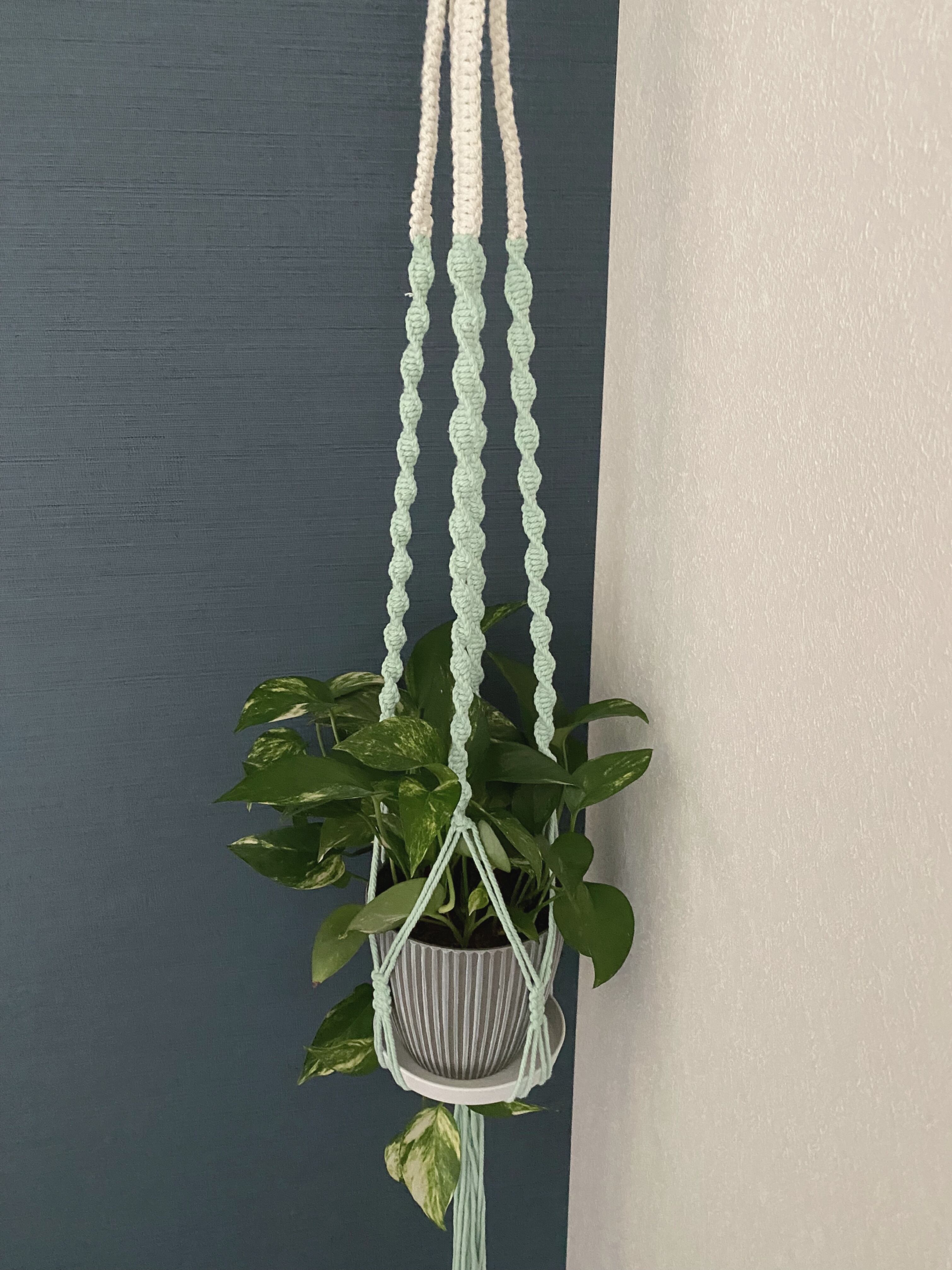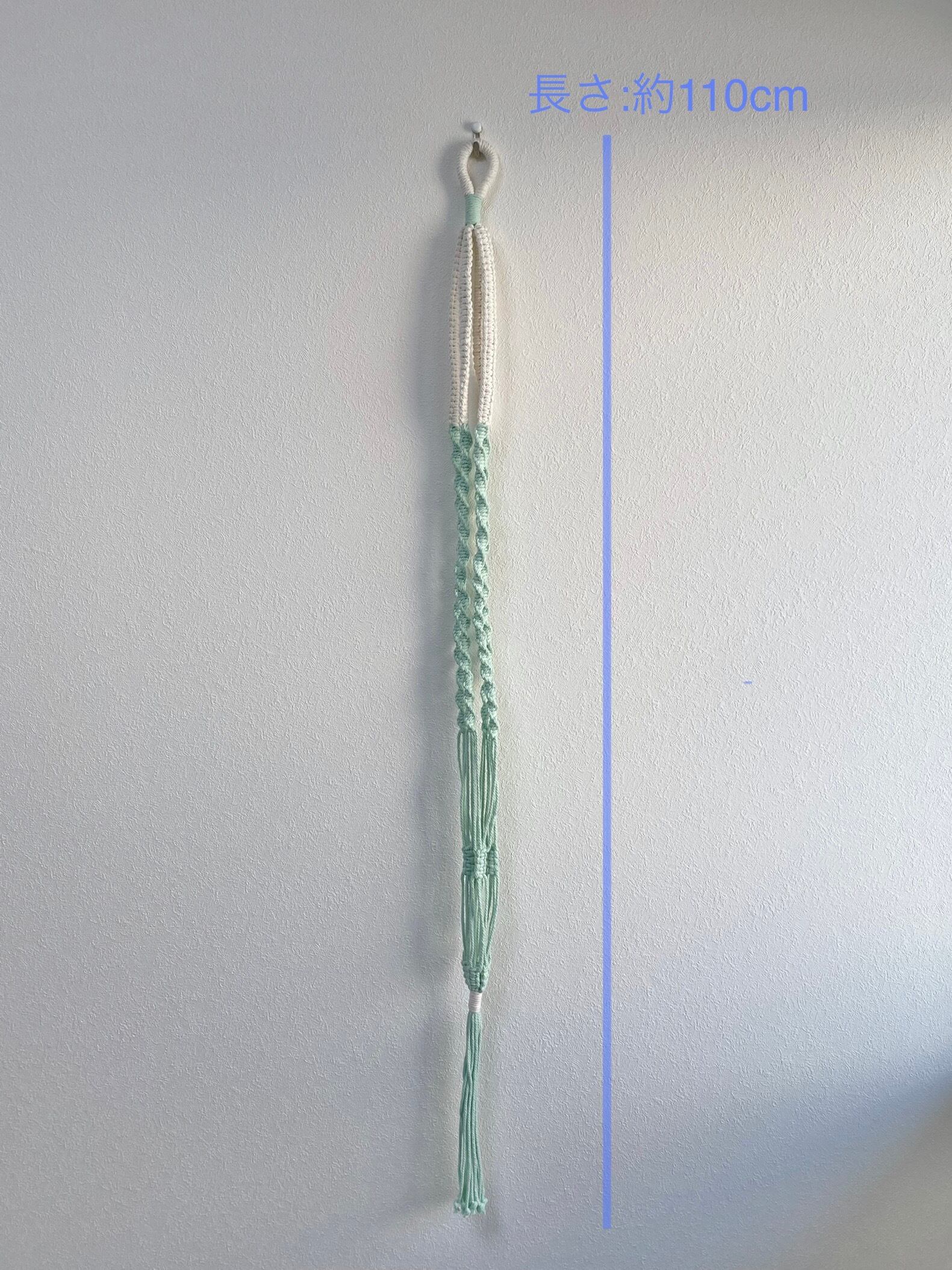 ライトグリーンのマクラメプラントハンガーとなっております。